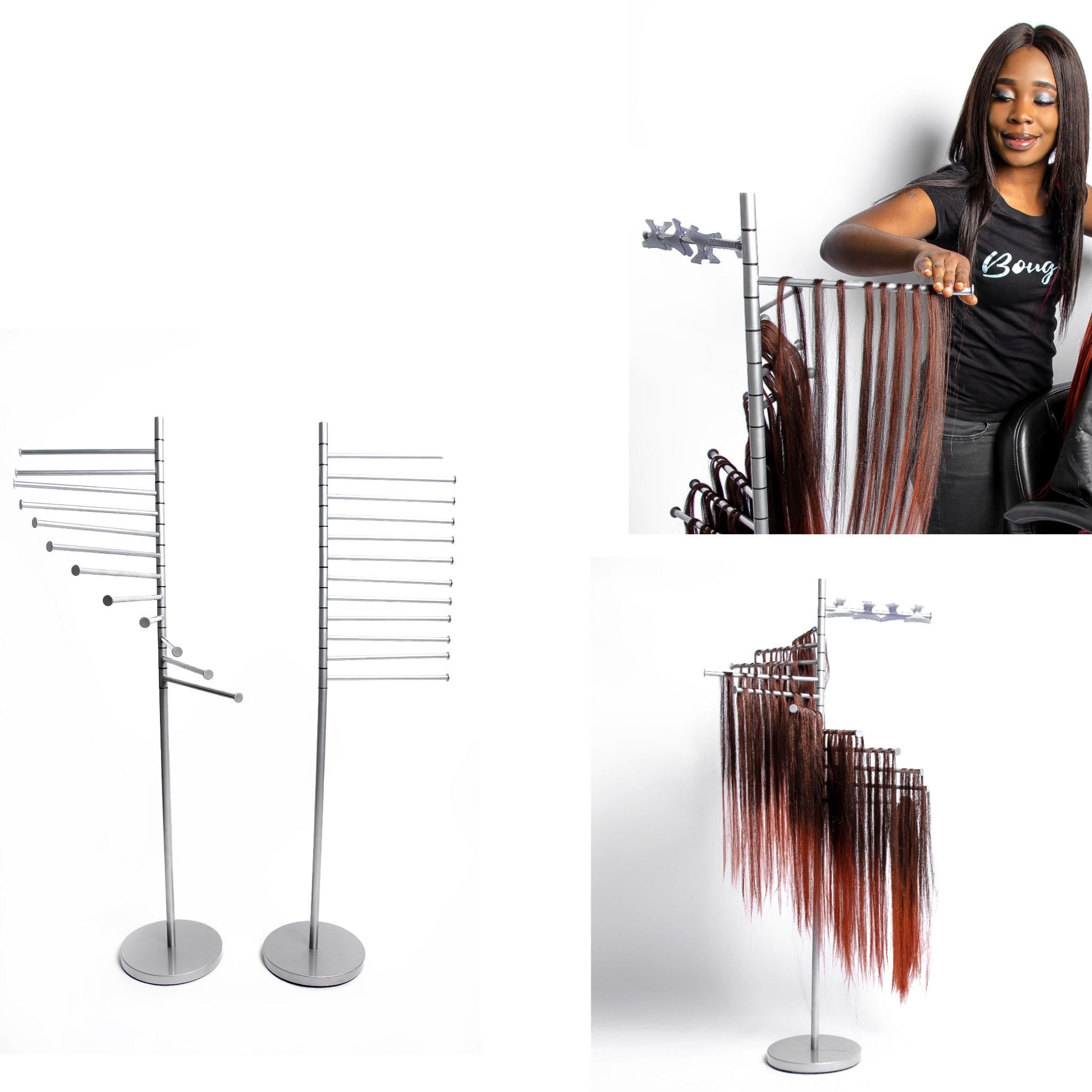 FEATURES: The goal of the stand is to save time when doing customers hair. You can put up to 7 packs of hair on the stand at one time. You can now save money because this will be your new hair assistant while doing hair Extensions and braids.